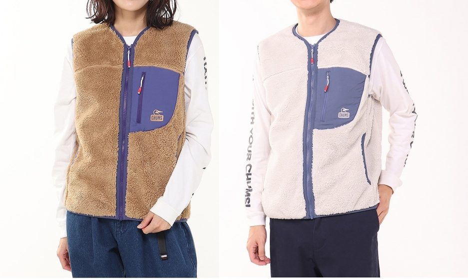 “CHUMS”ふわふわモコモコのかわいらしい冬の定番フリース、“Bonding Fleece”を使用したノーカラーベストが入荷しています。