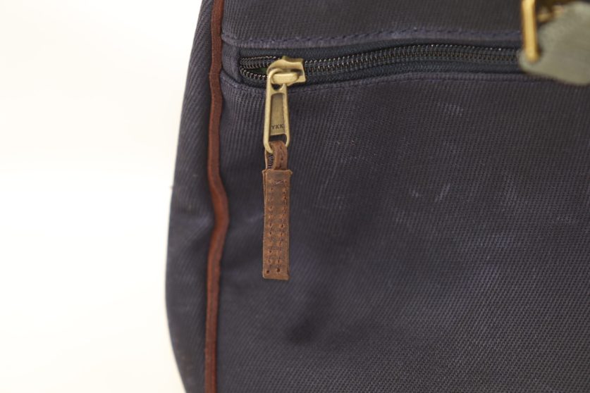 ハンドルとトリム、ラベルにはフルグインレザーを使用し、ビンテージのような風合いが特長です。